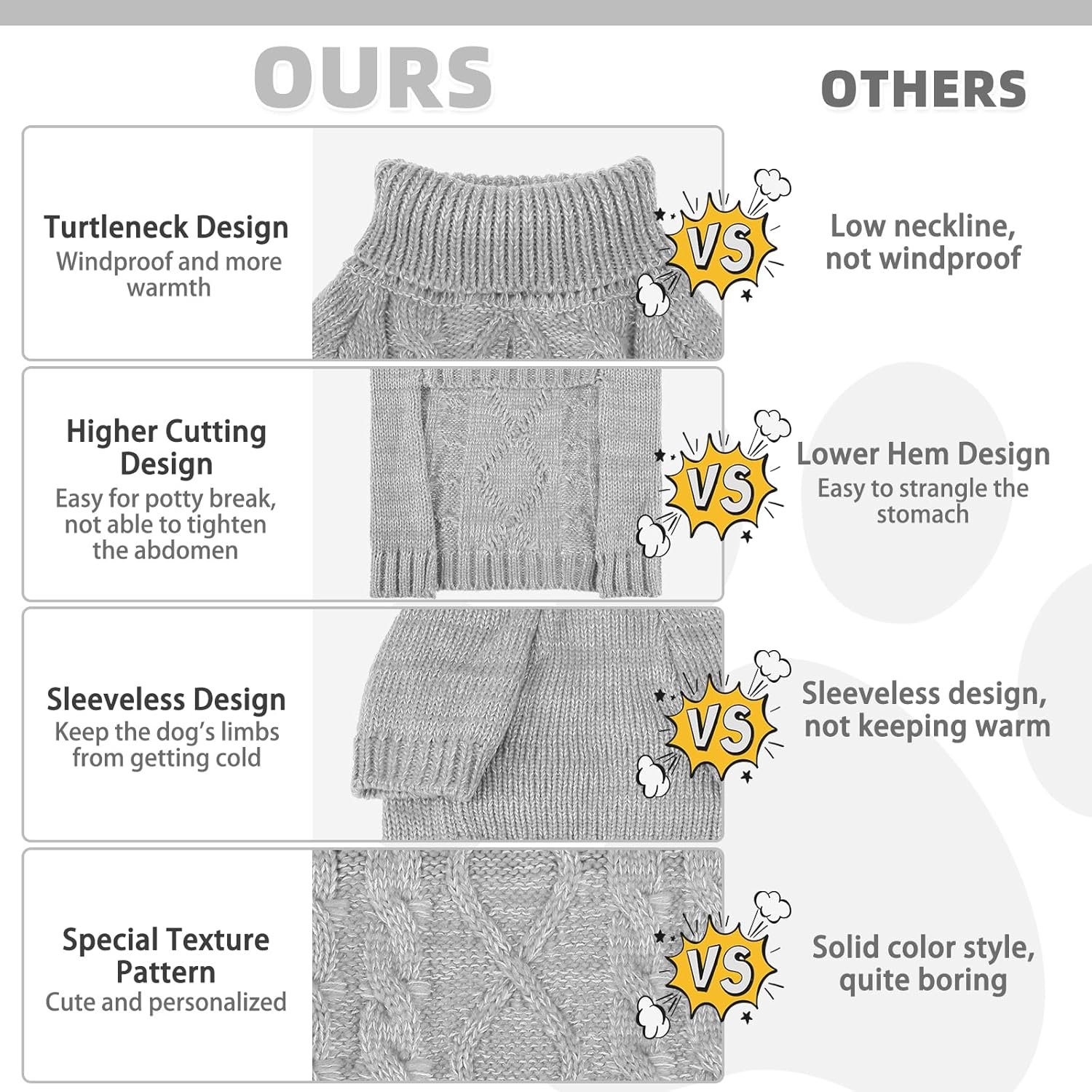 Turtleneck ontwerp en gemakkelijk te dragen: het Turtleneck -ontwerp biedt extra warmte, het beschermen van de nek en borst van uw huisdier tegen het koude weer. Deze huisdierenkleding voor honden worden hoger in de buik gesneden voor eenvoudige zindelijkheidspauzes, het pullover -ontwerp maakt onze hondenkleding gemakkelijk aan te trekken en op te stijgen. Met elastische stof kunnen honden vrij bewegen zonder beperkingen.