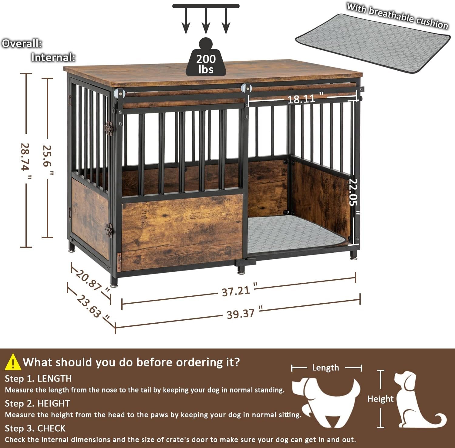 【Cushion inbegrepen en twee ingangen】】】-Koopro meubelstijl hondenkrat bevat een antislip-pet voor huisdieren om een comfortabele plek te creëren voor uw huisdierhond om te rusten. Tegelijkertijd, 2 toegangsontwerpen voor gemakkelijke toegankelijkheid en reiniging. De voorkant van de houten hondenkooi met kussen is ontworpen met een afsluitbare schuifdeur, die er modern elegant uitziet en ruimte bespaart