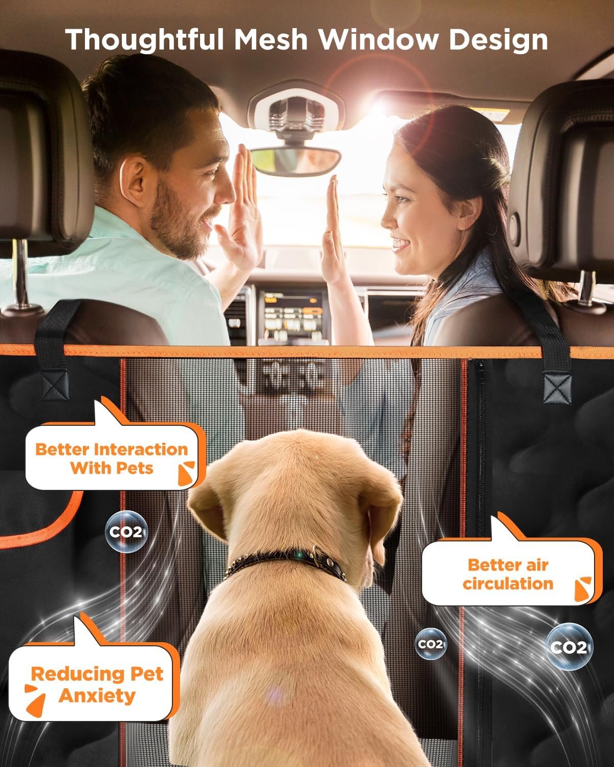 Krasvrije hondenauto -cover voor achterbank, waterdichte achterbank huisdier deksel voor honden met gaas raam, opbergvak, zijkle flap, opvouwbare niet -slip hondenzitting deksel universele maat fit voor auto/truck/SUV
