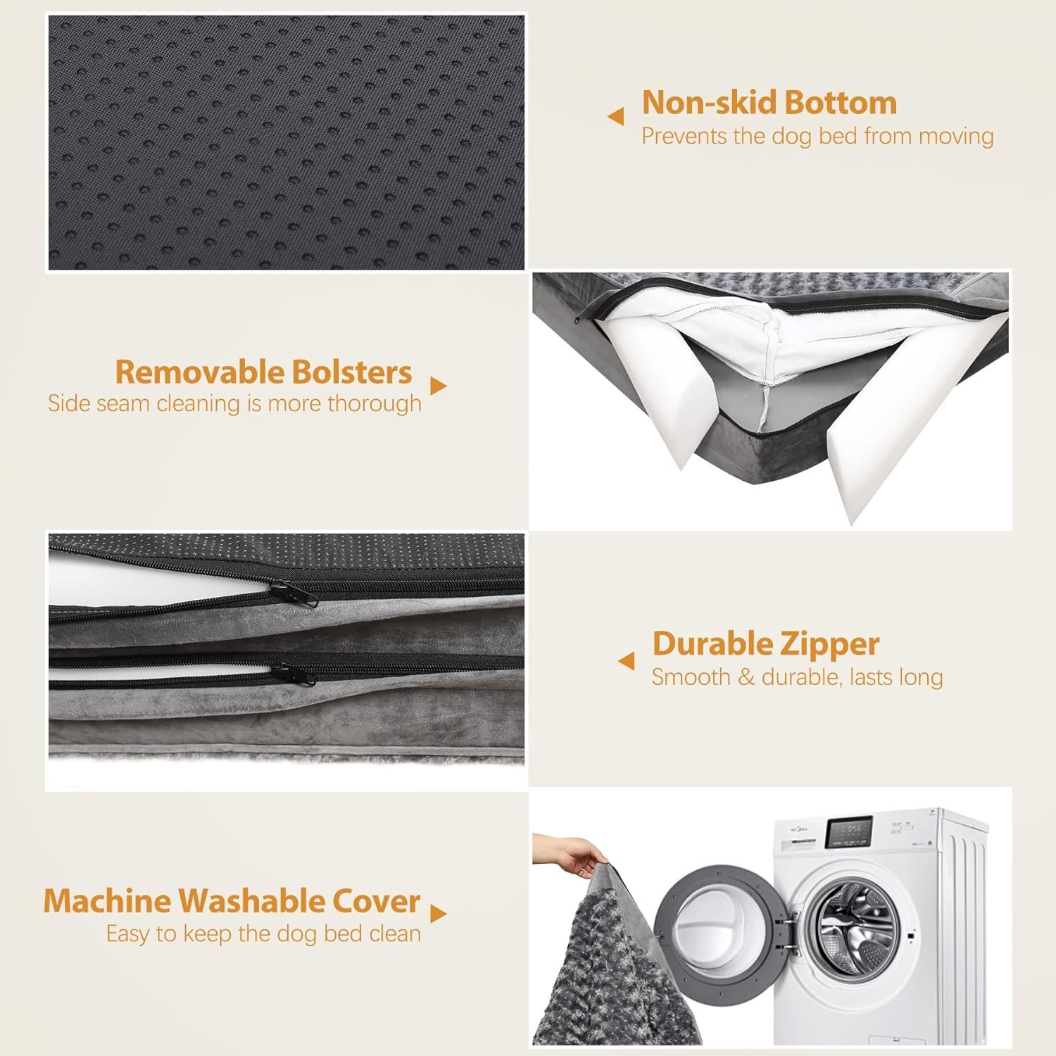 Wasbaar met de machine en gemakkelijk demonteren – Dankzij de verwijderbare hoes en de stimulisten, evenals de duurzame rits, kunt u het bed gemakkelijk demonteren zonder zich zorgen te maken over het beschadigen van het L-vormige en C-vormige rits op de buitenklep, die glad en duurzaam is, maakt het heel gemakkelijk te verwijderen. De verbeterde stof en versterkte hechtingen zorgen voor het deksel blijft net zo goed als nieuw na meerdere wasbeurten.