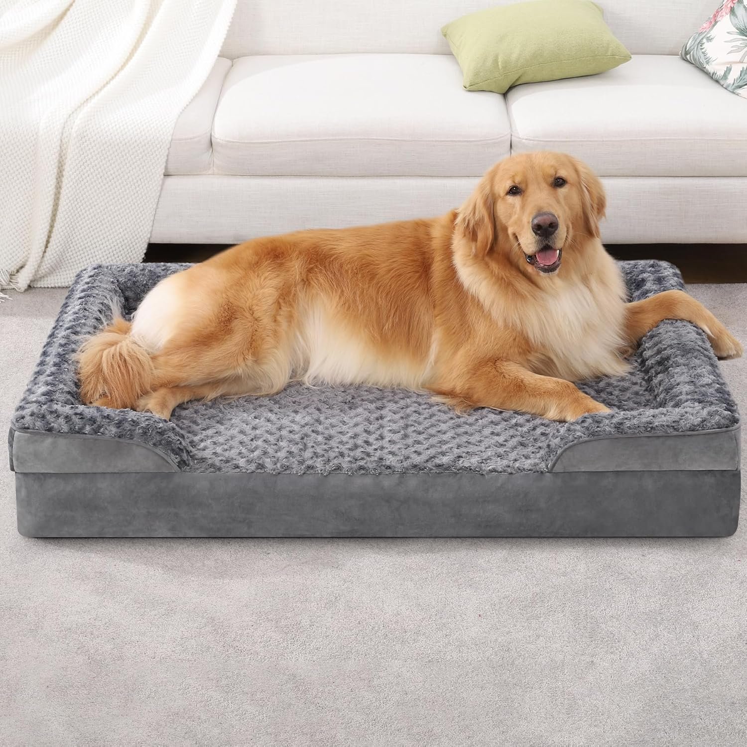 Ksiia orthopedische hondenbedden grote hondenbank waterdicht hondenbed wasbaar hondenbed eierschuim huisdier bed met afneembare bolster en niet -skid bodem grote hondenbed xl hondenbed sofa 44 x 32 x 7 inch, grijs, grijs