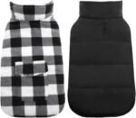 Omkeerbare honden winterjas: dubbelzijdige honden koudweerjas biedt een andere keuze voor slijtage. Waterdicht materiaal aan vaste kant laat uw huisdier genieten van de buitentijd in koude winter, zachte warme plaid aan de andere kant is perfect voor dagelijkse slijtage