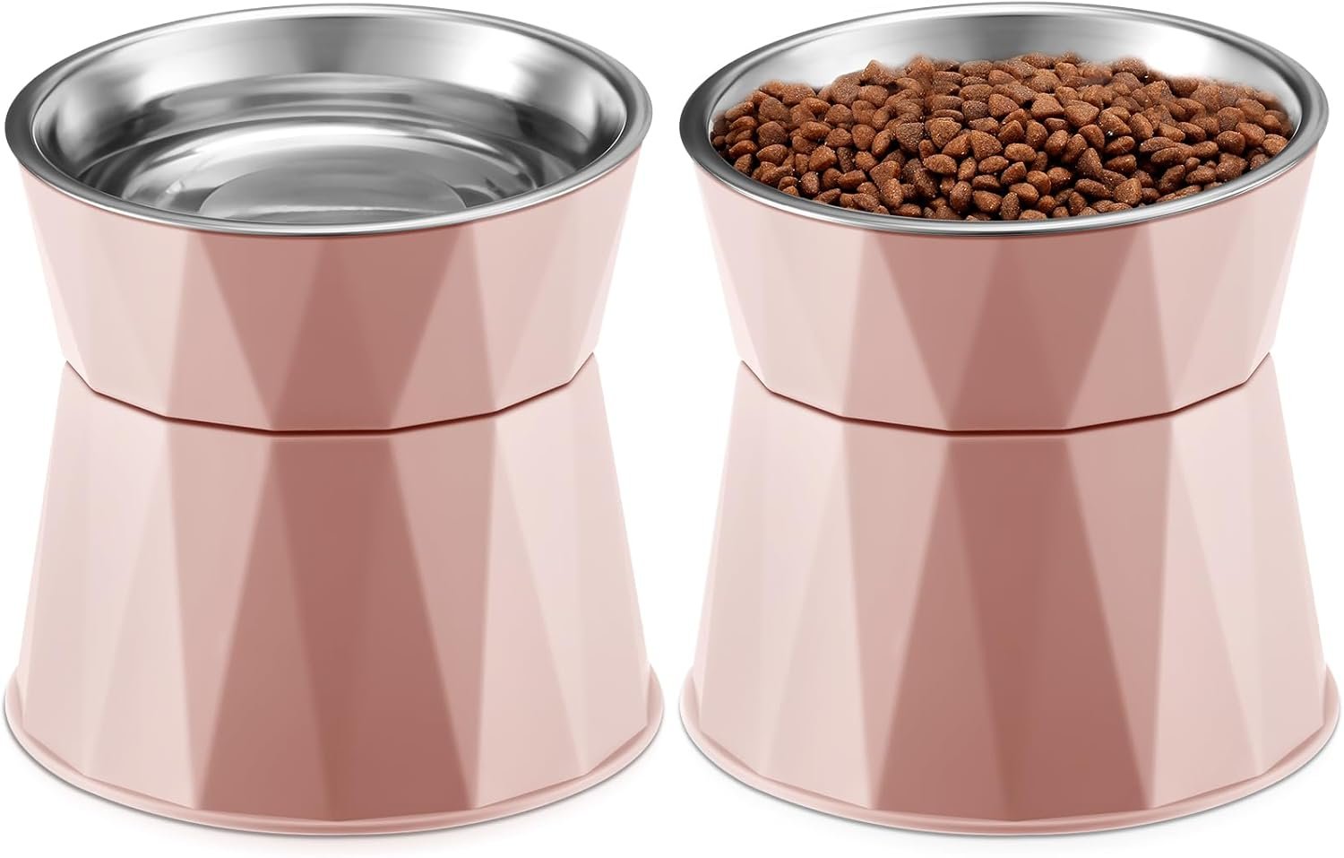 Lallisa 2 pc’s verhoogde kattenkommen verstelbaar verhoogde kattenvoeder Non Slip Food Water met standveilige roestvrijstalen kommen met huisdiervoedselstand voor huisdieren voeding eten (roze)