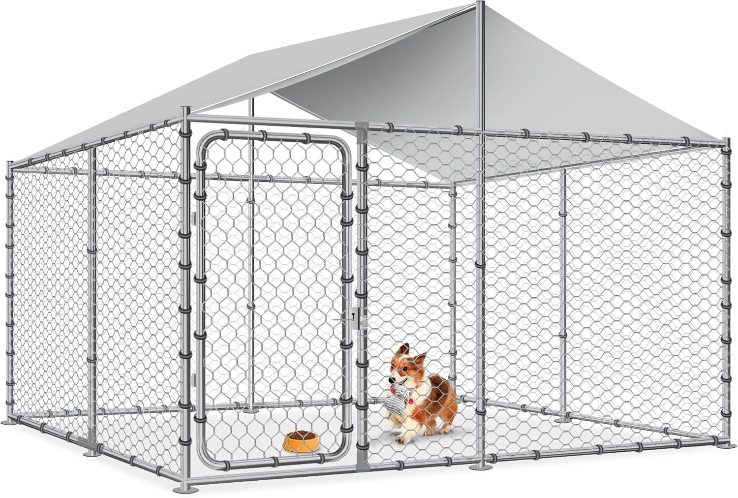 Leisu Heavy Duty Outdoor Dog Kennel Large Dog Cage Gegalvaniseerd stalen Pet Playpen House met waterdichte UV-resistente deksel, metalen gaas, beveiligde slot (90x90x63 inch)