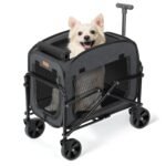 Lekebobor Cog Carrier met wielen grote tandwielen en honden 40 pond, rollend huisdierwagen met grote terreinwielen (zwart)