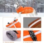 Reflecterende hondenjas met ingebouwde harnas: er is een reflecterende strook op de halslijn van de grote hondenjas, die uw hond in het donker kan plaatsen en ze veilig kan houden. Er zijn twee D-ringen aan de achterkant, die kunnen worden bevestigd aan een riem of kaktas