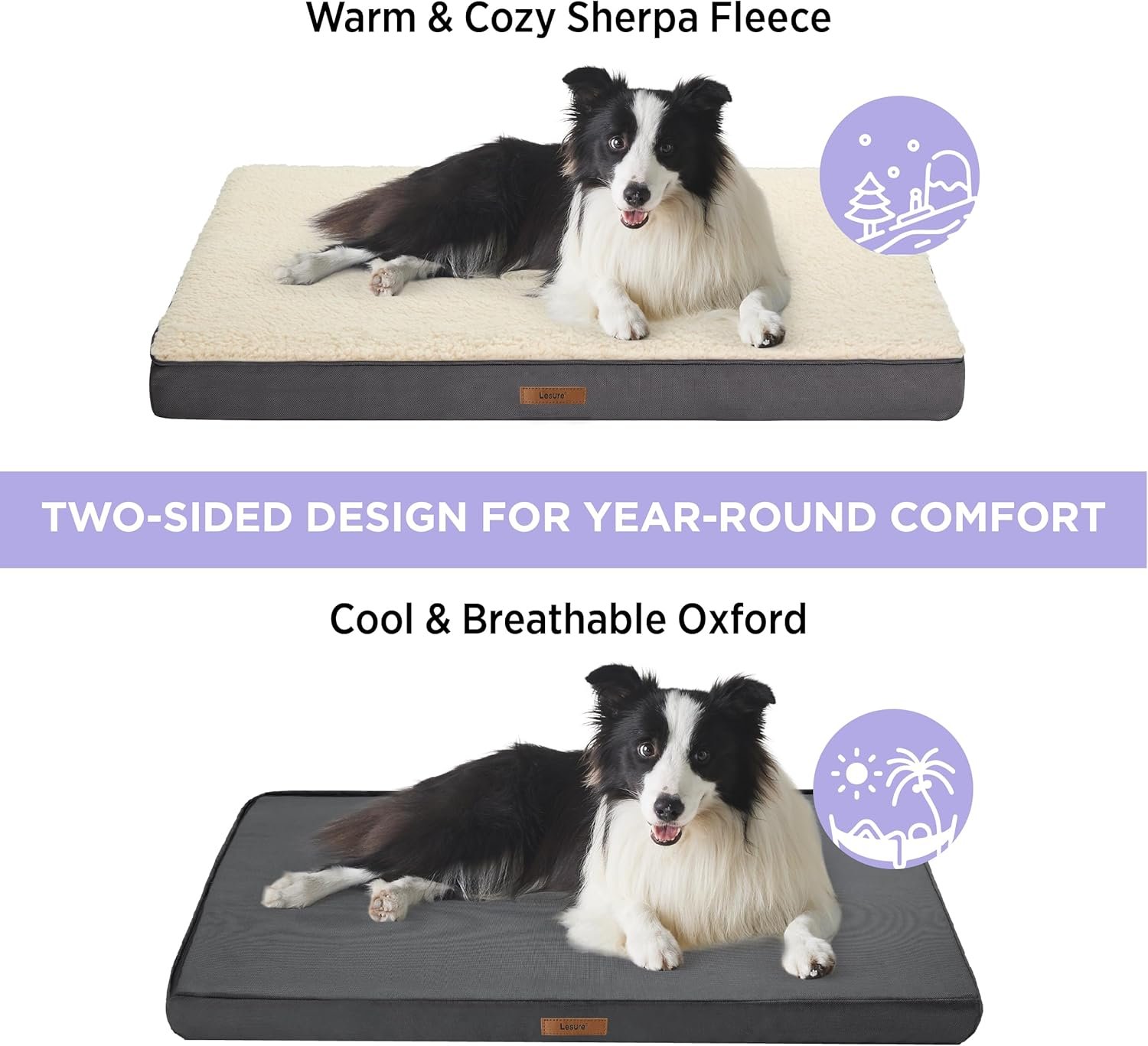 All-Seasons Bed: het tweezijdige ontwerp heeft warme en gezellige sherpa met een achterkant van koele en zachte Oxford-stof. Duurzaam en geschikt voor het gebruik van het hele seizoen, houd je hond koel in de zomer en warm in de winter voor meer comfort