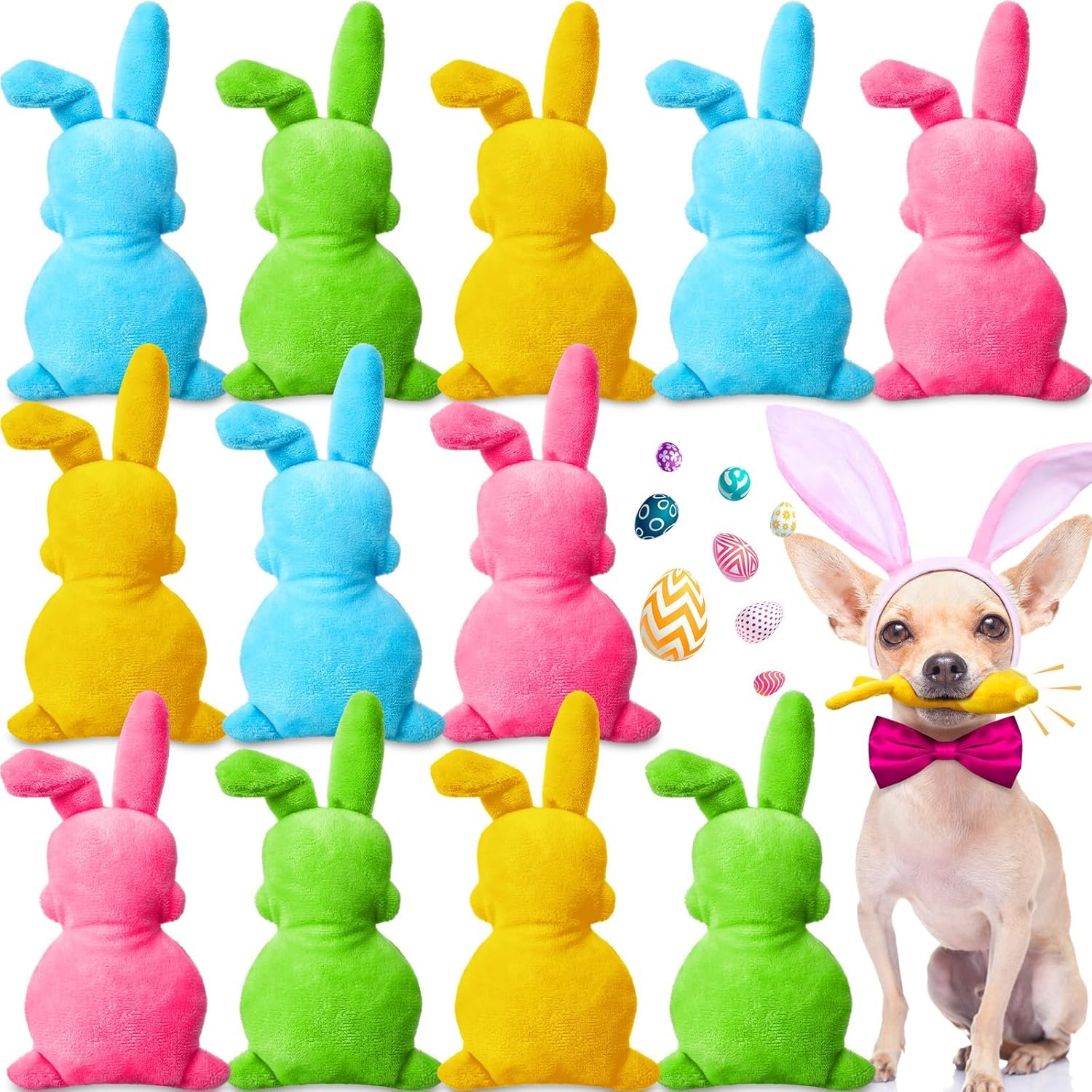 Leyndo 12 stuks Paasspeelgoed voor honden Pastelkleuren Bunny Dog Toys 6 inch Easter piepende hondenspeelgoed 6 inch voor kleine middelgrote grote honden bijtjes kauwspeelgoed Pasen Pet kostuum