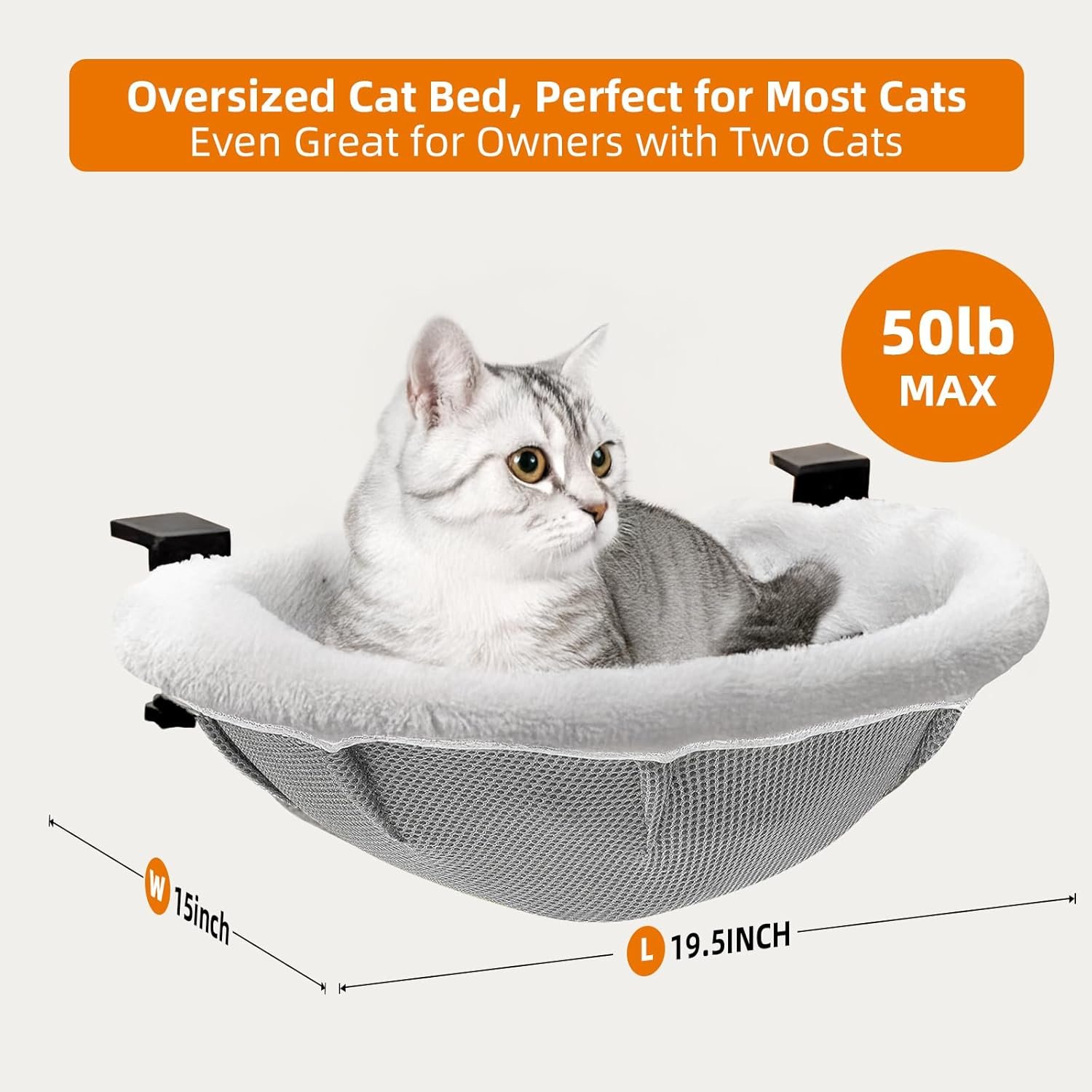 Lilyang Grote kattendeskbed – Ondersteunt tot 50 pond, ruime 17,5 “x14” slaapoppervlak, stevige dubbele klemmen, verzonken hangmat, verwijderbare zachte donzige deksel, kattenbedden voor werk- en gamebureau, eettafel, eettafel, eettafel