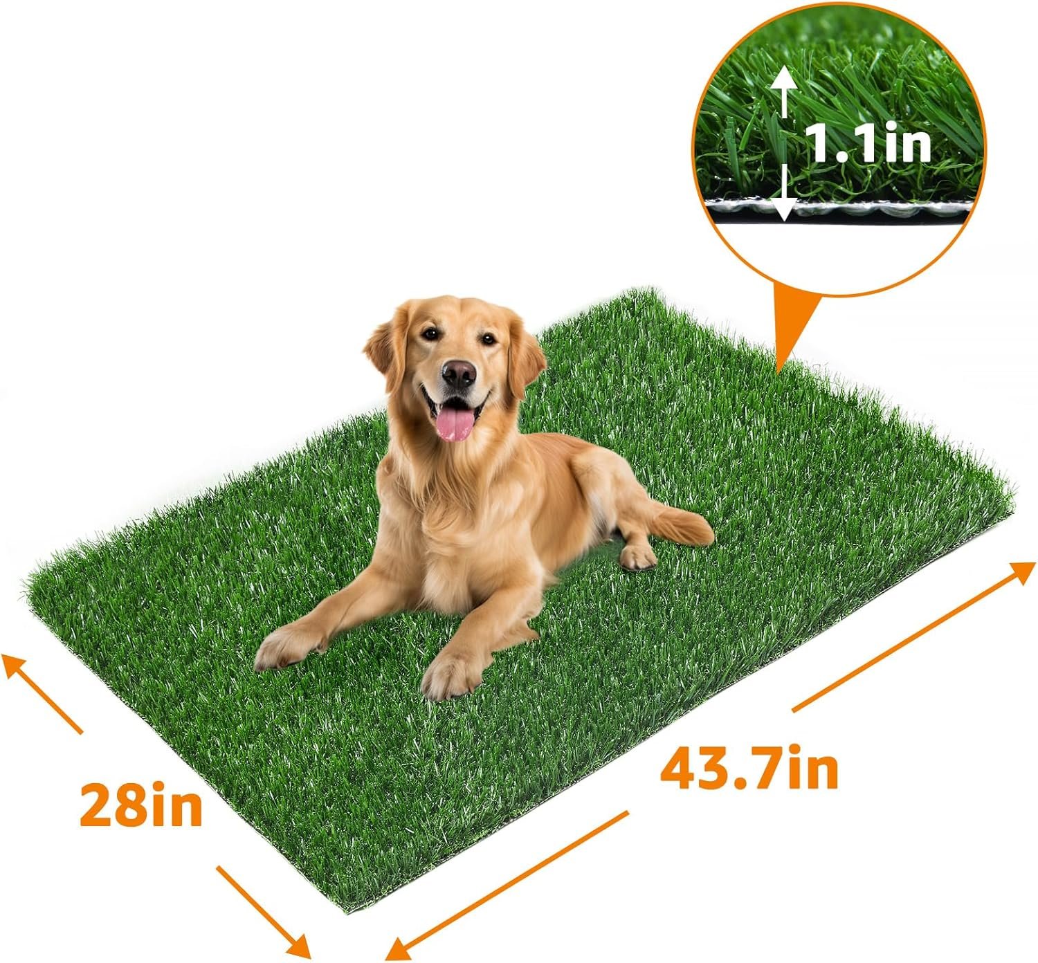 【Pet Artificial Grass Grootte】 De grootte van het huisdiergras is 43,7 x 27,6 inch, grasbladen zijn 1,1 “lang. Het is compatibel met de Loobani 45×29 inch grote potjesbak. Gras is super zacht en weelder