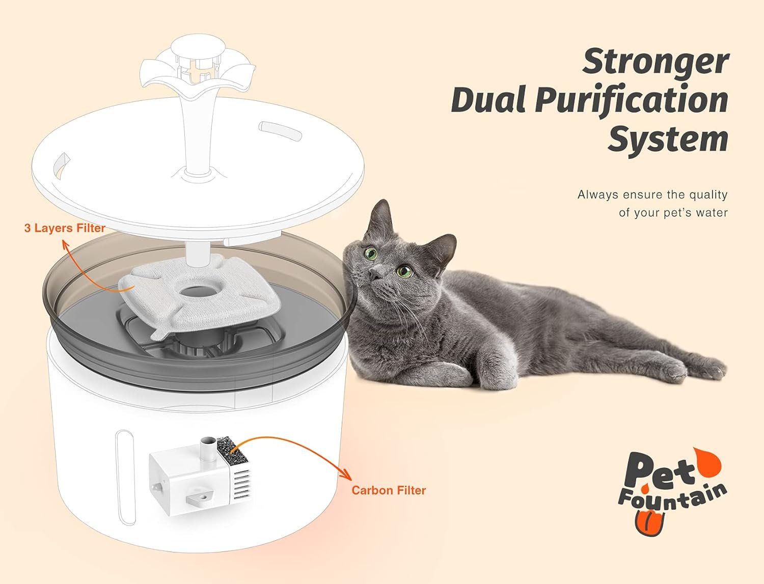 Whisper-Quiet-Deze waterfontein voor katten binnen heeft een waterpomp die zo stil is, je zou nooit weten dat het er is! De low -lawy water -dispenser voor katten en honden is een geweldige manier om uw huisdieren te helpen kalm en gehydrateerd te blijven ‘s nachts. Veel dieren zijn bang voor luide geluiden, dus het stille ontwerp van deze hond en kattenfonteinwaterkom maakt het aantrekkelijker voor eigenaren van dieren die hun huisdieren gezond en inhoud willen.