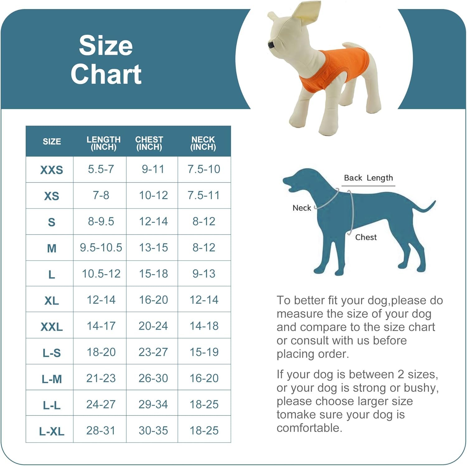 11 maten kunnen worden gekozen – maat varieert van XXS? L -XL, geschikt voor kleine middelgrote grote honden en bulldog. Met de nekomtrek van uw huisdier, borstomtrek en ruglengte en kies de juiste maat volgens onze maatinformatie in de beschrijving voor u hebben de bestelling.