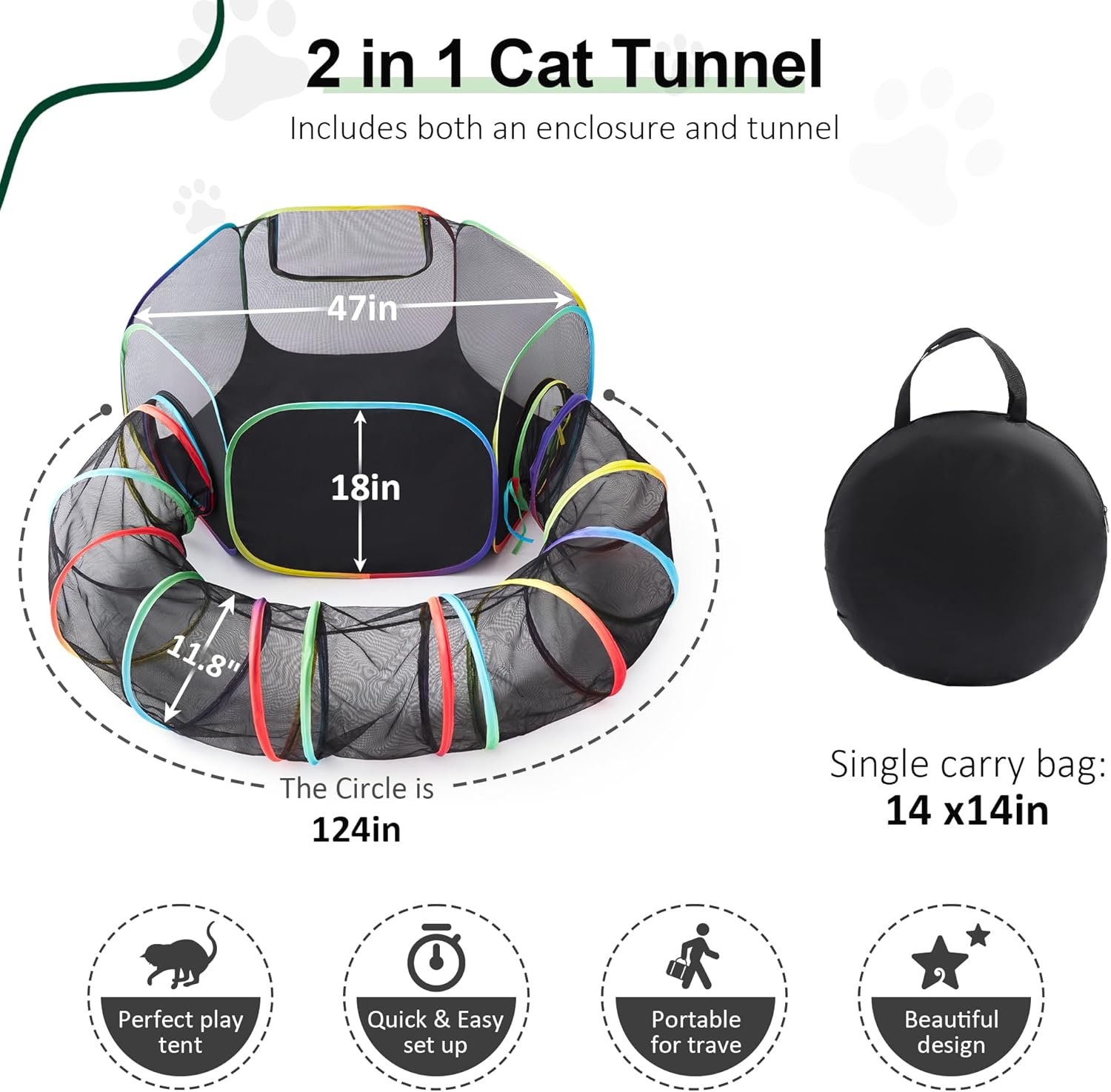 Love’s Cabin Outdoor Cat -behuizingen Rainbow, opvouwbare Catio Outdoor Cat Bijlage Playground omvatten draagbare tent, Circle Kitten Pladen Tunnel, Buiten Huis voor binnen Kitty en kleine dieren