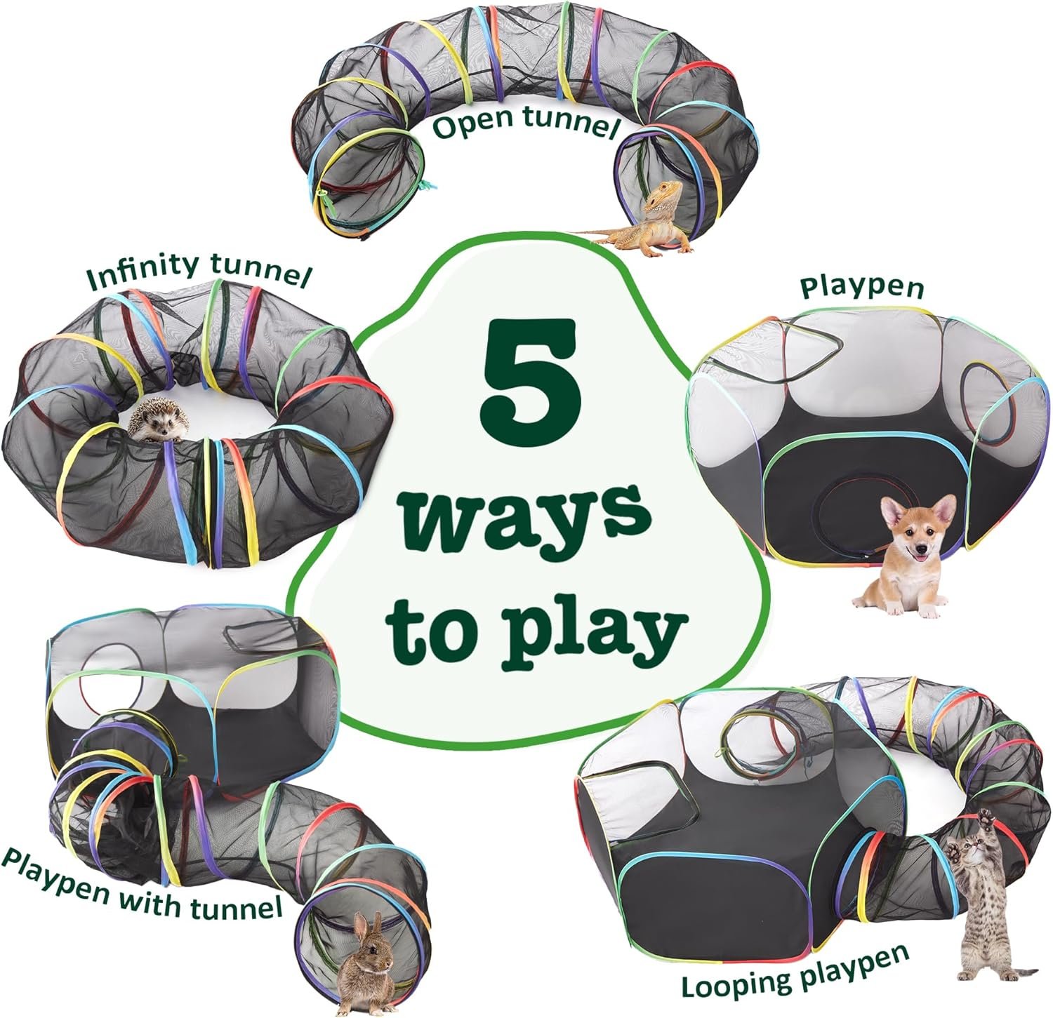 Ruime luxe katspelen: biedt voldoende ruimte met een volledig uitgebreide tentgrootte van 47*47*18 inch en een tunnel van 12*124 inch. Dit “herenhuis” buitenshuis biedt meer dan 15 vierkante voet activiteitsruimte, die meerdere katten, konijnen, cavia’s, fretten of andere kleine dieren biedt. Extra ruimte is beschikbaar voor speelgoed en traktaties