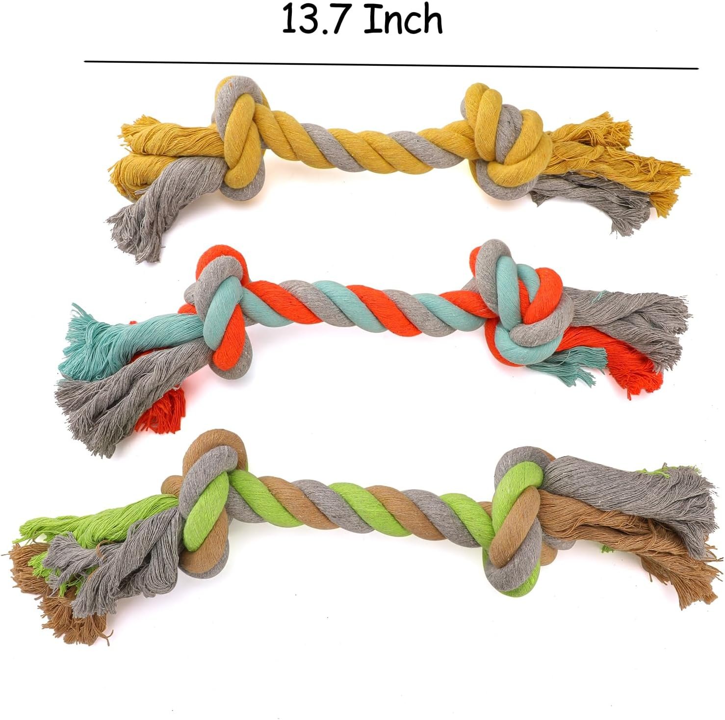 Luckitty 3 pack 13,7 inch hondentouwspeelgoed voor middelgrote agressieve kauwers, zwaar onverwoestbaar kauwspeelgoed, tandenreiniging, geelgroene oranje