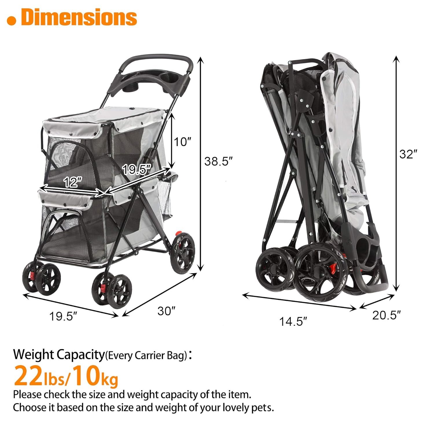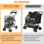 Extra ruimte – Met opslagmand en bekerhouders is het erg handig wanneer u gaat wandelen of gaat winkelen, het kan uw kleine items of huisdierenbenodigdheden opslaan, zoals snacks, waterglazen, paraplu’s, kleding, enz.