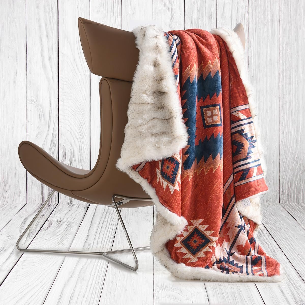 Luxe pluche faux bont gooi deken met azteekse patroon, super warm, fuzzy, elegante, donzige decoratie deken voor bank, fauteuil, bank en bed, 60”x 80 ”, rood