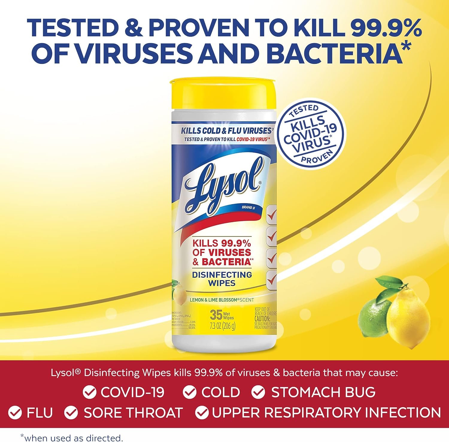 Desinfecterende doekjes doodt 99,9% van de virussen en bacteriën: lysol desinfecterende doekjes worden getest en bewezen dat ze 99,9% van virussen en bacteriën schoonmaken en doden, waaronder 8 koude en griepvirussen (wanneer gebruikt zoals aangegeven).