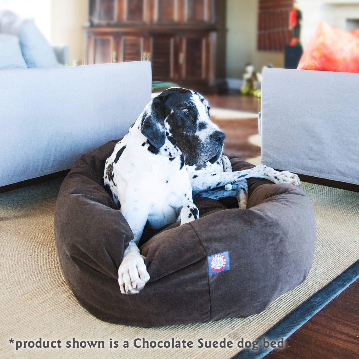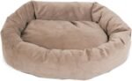 Majestic Pet 40 Inch Suede kalmerende hondenbed wasbaar – gezellig zacht ronde hondenbed met wervelkolomondersteuning voor honden om hun hoofd te laten rusten – pluizige donuthondbed 40x29x9 (inch) – Ronde huisdierbed groot – steen
