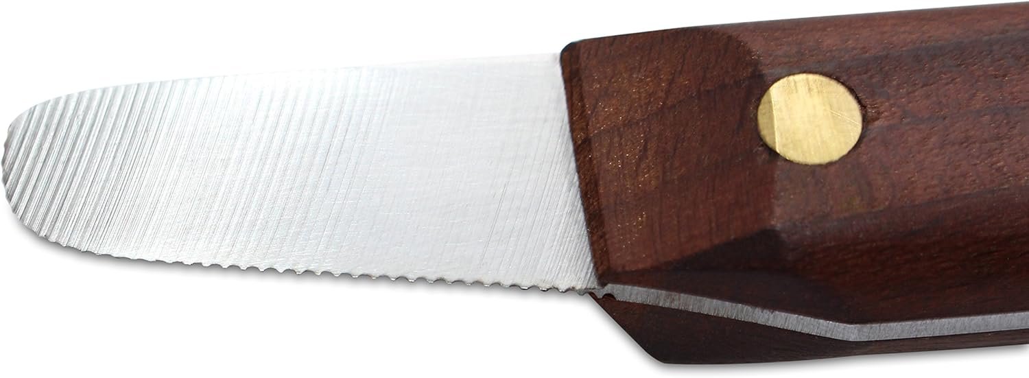 Lichtgewicht; roestvrijstalen messen voor extra duurzaamheid en roestweerstand; Revited houten handgrepen voor eenvoudiger handling, vooral wanneer nat
