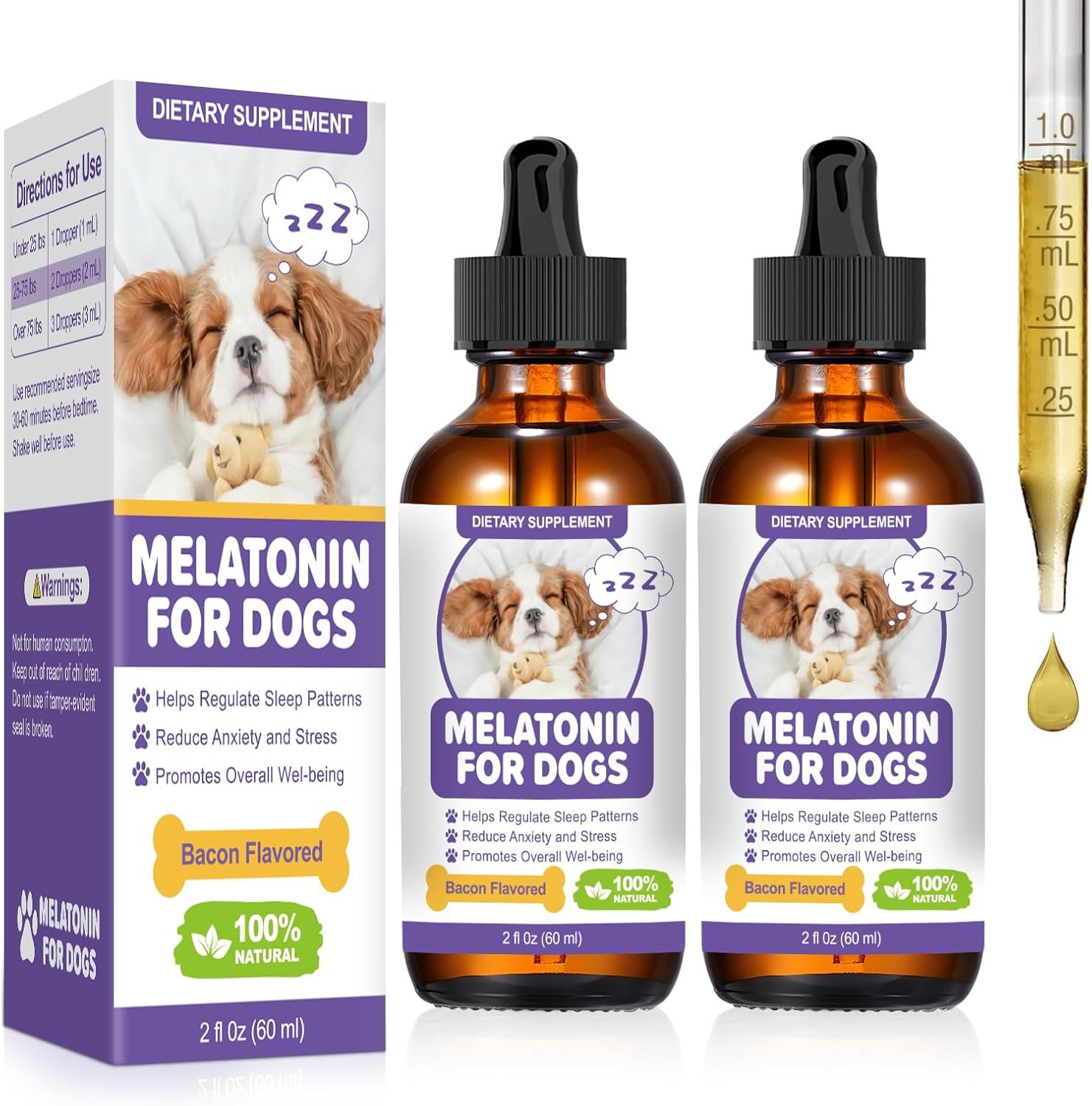 Melatonine voor honden, honden melatonine, hondenslaaphulp, vloeibare melatonine voor honden, kalmerend voor honden, melatonine voor honden slaap verlicht angst en stress bij honden, helpt kalm en rustgevende slaap, speksmaak