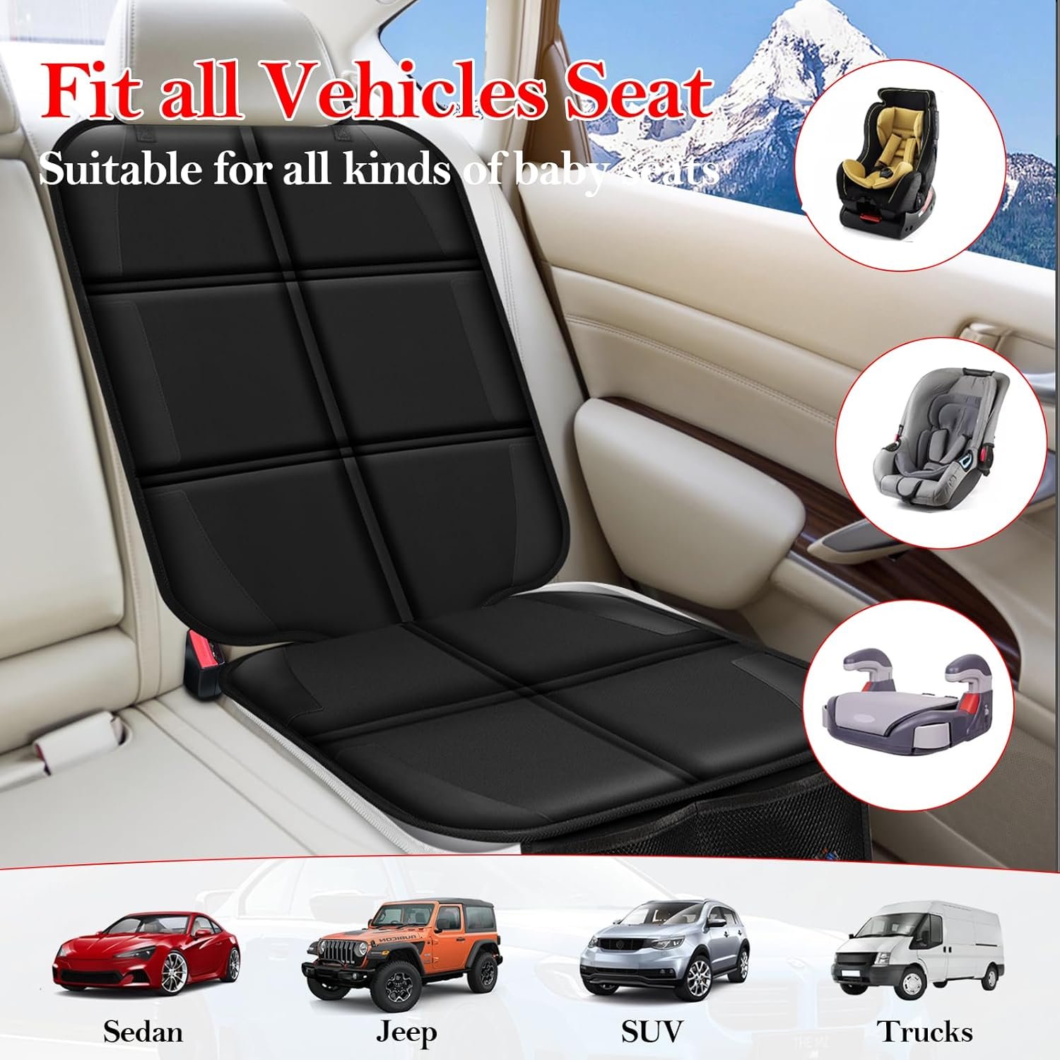 Dikker materiaal: in tegenstelling tot de gewone autostoelbeschermer, gebruiken de onze dikker PE -schuim. Geen inspringen meer van het installeren van kinderzitjes of zware objectenwaterbestendig: de stoelhoezen van waterdichte materiaal is geschikter voor gezinnen met baby’s en huisdieren, en de dagelijkse schoonmaak kan worden geveegd met een natte doek, reducerende huishoudstijd en meer bijbehorende kinderen en gezinnen