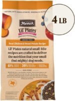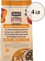 Merrick Lil ‘platen korrelvrij droog hondenvoer voor kleine honden, kip en zoete aardappelbrokken met rauwe hapjes – 4,0 lb. tas