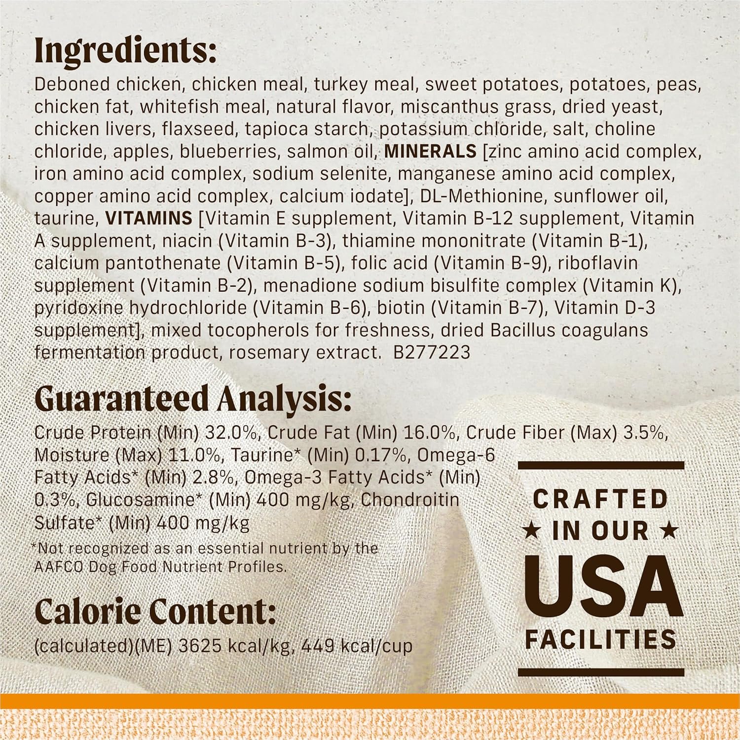 Graanvrij droog hondenvoer voor kleine honden heeft omega-6 en omega-3-vetzuren om huid en vacht te voeden, en glucosamine en chondroïtine voor honden gezonde heupen en gewrichten