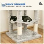 MWPO 63,8 inches multi-level kattenboom voor grote katten met met zusal bedekte krassende palen, opgevuld platform, hangmat en condo, stabiele kattentoren Cat Condo Pet Play Play Light Gray