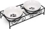 Navaris keramische huisdierenkom set – Voedselwaterkommen voor katten, kleine honden en puppy’s met niet -slip retro metalen standaard – set van kommen, elk 10,8 oz