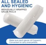 Individueel verpakt: ons pakket bevat 30 pakjes gaasroll en 6 medische banden, elke rol is 4 inch x 4,1 meter. Deze gaasbandrollen zijn niet-steriel omdat ze niet direct in contact mogen komen met de wond, maar deze gaas worden geproduceerd en verpakt in een stofvrije omgeving en ze zijn afzonderlijk verpakt om uiterste hygiëne te behouden