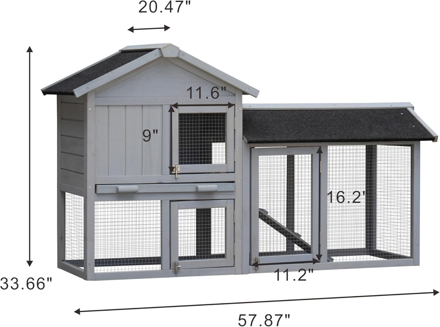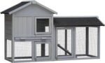 Nicbex konijn hok houten konijnenkooi met deuren en hekken konijnkooi met verwijderbare lade en dubbel waterdicht dak, klein dierenhuis voor konijnen, cavia’s en hamsters, 57,9 “W, grijs