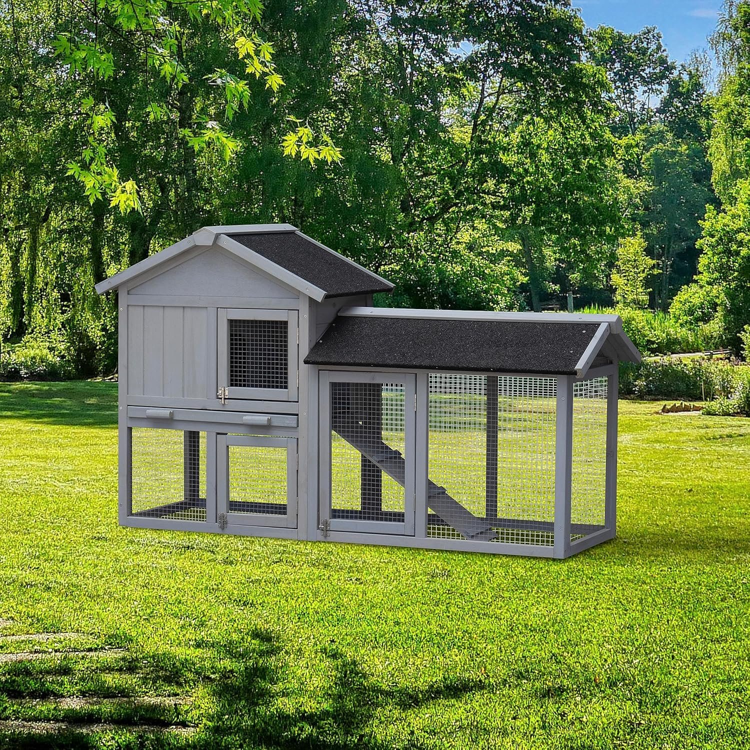 ????comfortabele leefruimte: het konijnenhok heeft een grote activiteitsruimte en de helling ermee is handig dat uw huisdier vrij loopt. Met een verwijderbare lade is het handig voor u om het afval erin op te ruimen, wat gunstig is voor de lichamelijke gezondheid van uw huisdierenvrienden. De gezellige ruimte zorgt ervoor dat uw huisdiervriend een geweldige tijd heeft.