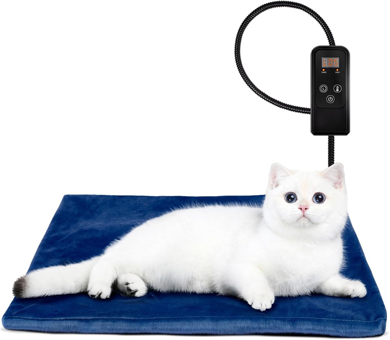 Niubya Pet Heating Pad voor honden en katten, verstelbare temperatuur en waterdichte verwarmde mat met huisdieren met timer, elektrisch verwarmingspet met kauwbestendig koord en zacht wasbare deksel