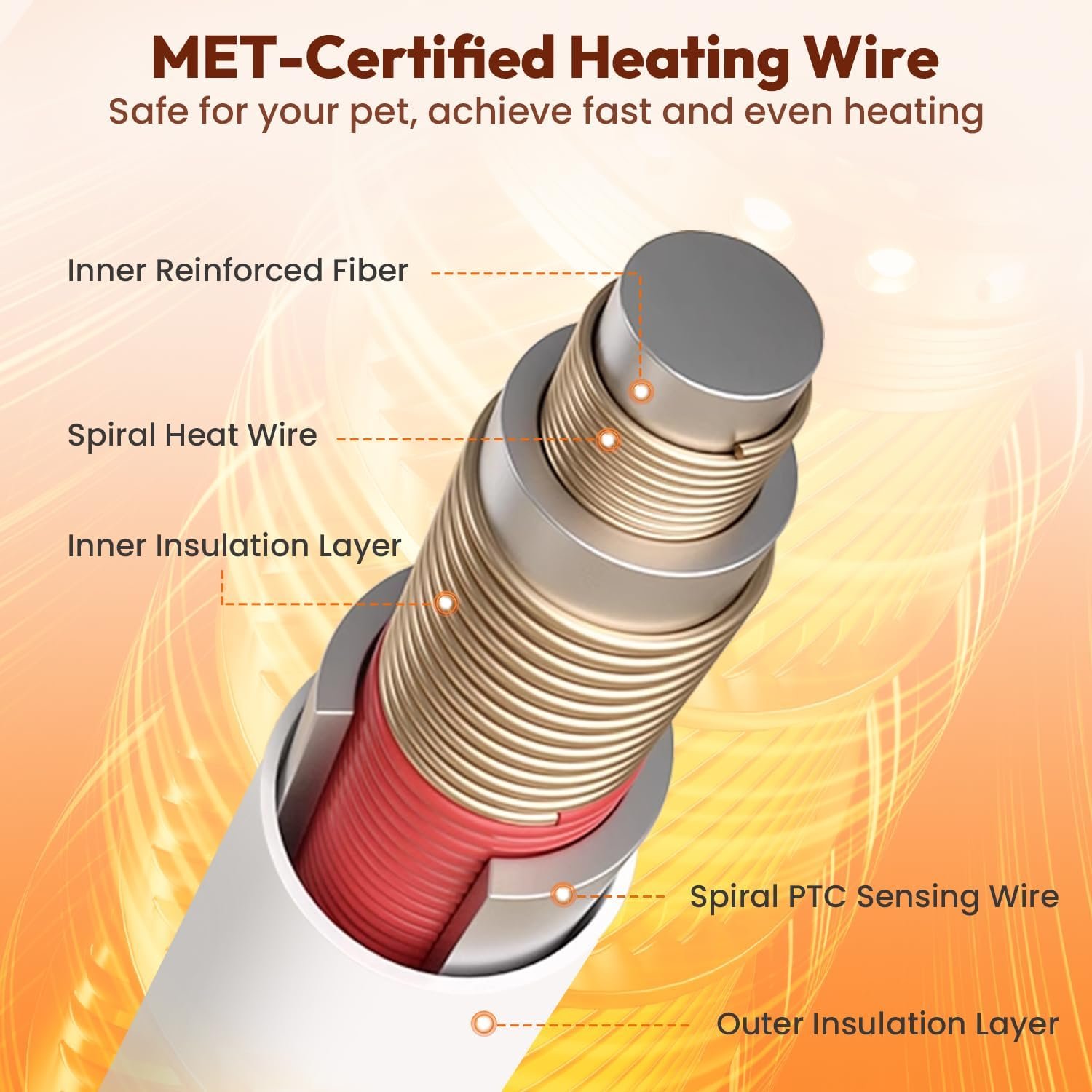 Verstelbare temperatuur: uitgerust met een verstelbare temperatuurregelaar van 6 niveaus, zodat u de juiste temperatuurinstelling kunt kiezen op basis van de behoeften van uw huisdier en de omliggende omgeving. Het bereik ligt tussen 86 ℉ en 131 ℉, waardoor het optimaal comfort voor uw huisdier wordt gewaarborgd, of het nu tijdens koude winterdagen of koele nachten is.