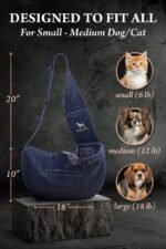 Noah & Paw Dog Sling Carrier voor kleine honden 5-18lb, kattendrager, huisdier sling met verstelbare gewatteerde riem, premium denim bekleed met bont, 3x veiligheidsvoorziening, machine wasbaar