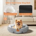 Nobleza hondenbedden voor kleine honden, pluche anti-angst donut ronde orthopedisch hondenbed om te slapen, ondersteunende wasbare wasbare kalmerende opwarming zachte niet-slip kattenbedden voor wastable binnenkatten, 24in, lichtgrijs