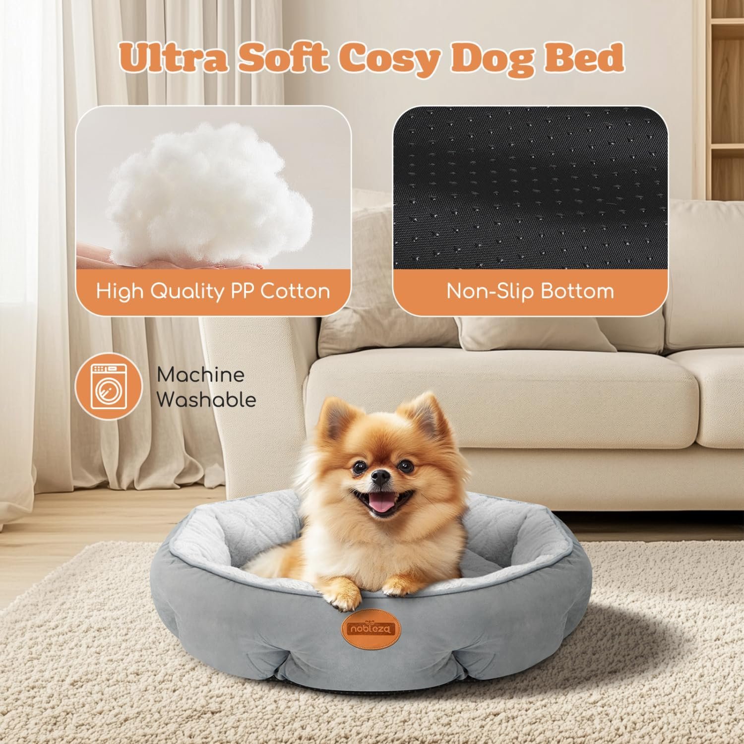 Gezellig hondenbed: gemaakt van hoogwaardige buitenste frosted fluwelen en binnenste PV-fluweel, gevuld met PP-wit katoen, Nobleza Washable Small Dog Bed biedt uw huisdier de meest comfortabele slaapervaring. Opmerking: vanwege vacuümpakking is het normaal dat het bed wordt gecomprimeerd. Geknip, kneed en kneden het voor gebruik naar zijn oorspronkelijke vorm, controleer de video op gedetailleerde methoden.