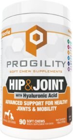 Nootie’s Progility Hip and Joint Supplement is een voorgeschreven krachtige dierenarts geformuleerd heup- en gezamenlijk supplement dat is ontworpen om de mobiliteit van uw huisdier te verbeteren voor een gelukkiger en gezonder leven. Dit bacon -gearomatiseerde kauw bevat 500 mg glucosamine en 100 mg chondroïtine samen met MSM methylsulfonylmethaan), kurkuma en hyaluronzuur in elk kauw. Nootie’s progiliteitsheup en gewrichtssupplement bevat ook een probioticum voor een betere absorptie van voedingsstoffen en actieve ingrediënten. Progility -producten worden gemaakt in een door de FDA geregistreerde faciliteit en worden getest door een derde deel op potentie en effectiviteit.