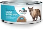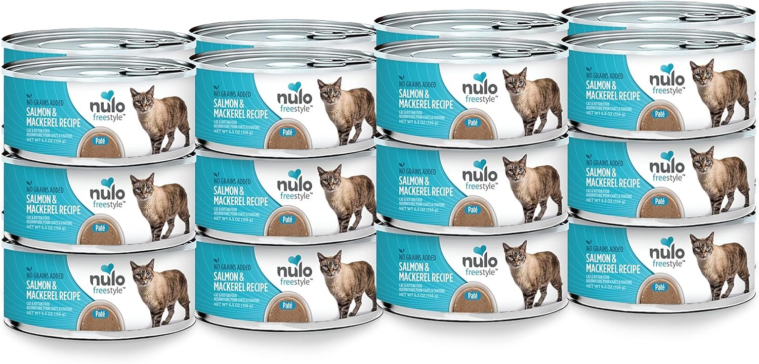 Salmon & Mackerel Recept – Nulo Freestyle Cat & Kitten Wet Pate Canned Cat Food heeft onze eigen mix van korrelvrije eiwitten en vitamines, ideaal voor katten met gediagnosticeerde graanallergieën en gevoeligheden. Pakket van elk 24, 5,5 oz