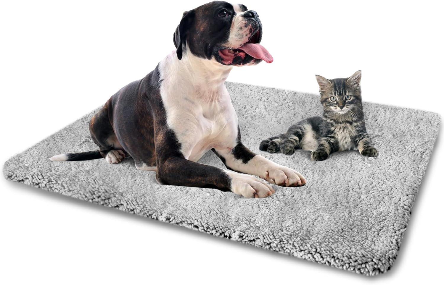 NWK Fluffy Self Warming Thermal Plush Fur Pet Mat voor honden en katten, lichaamswarmte reflecterend kattenbedmat, wasbaar, voor bank & krat & kennel & autostoeltje (23 ” x 35 ”, grijs)