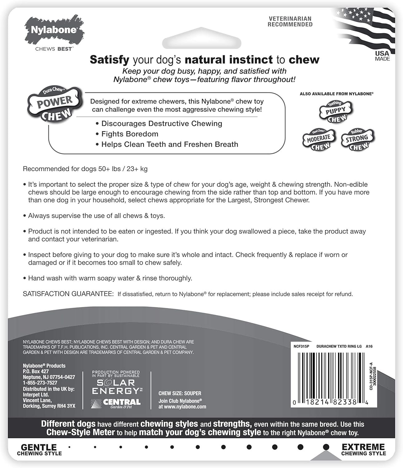 Nylabone getextureerde ring Power Chew Toy voor honden, hondenspeelgoed voor agressieve kauwers, smaakmedley, X -Large – 50+ lbs, 1 telling