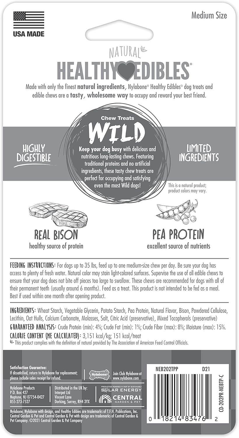 Nylabone gezonde eetbare eetwaren wilde natuurlijke langdurige bizonsmaak bot kauwtraktaties voor honden, medium (2 telling)