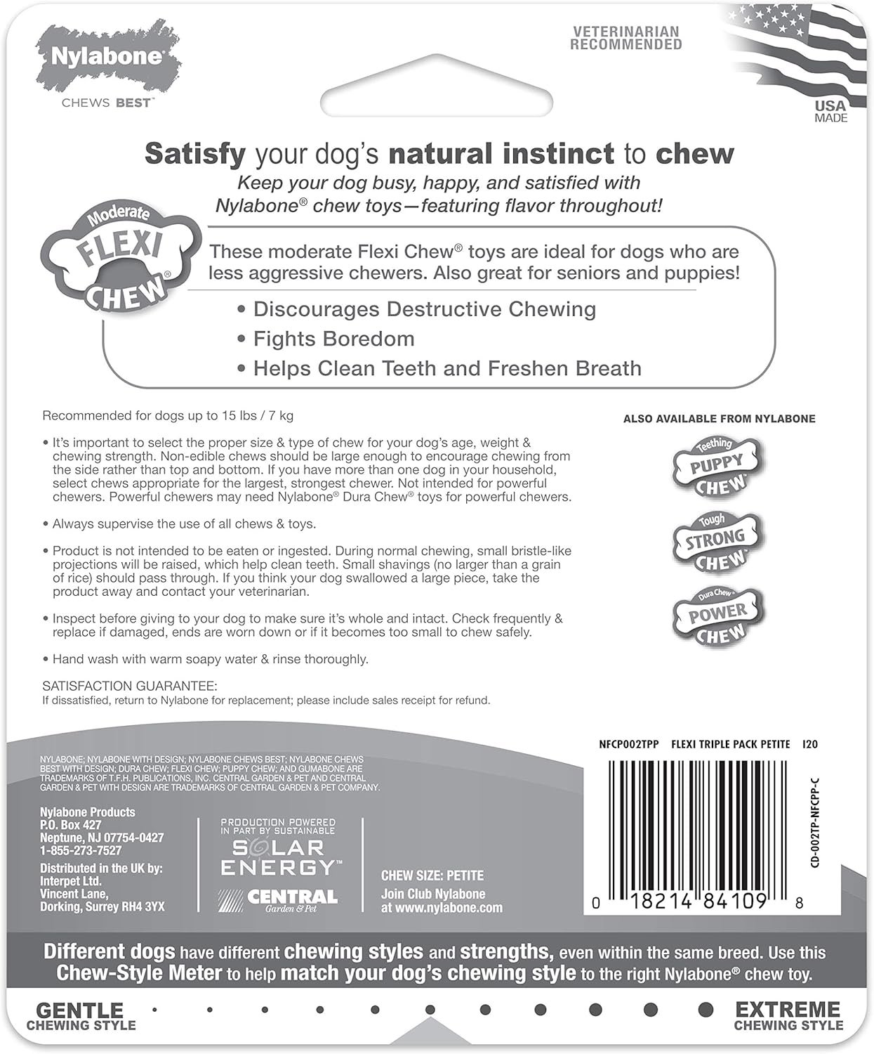 Nylabone origineel bot flexi kauwspeelgoed voor honden, hondenspeelgoed voor matige kauwers, spek en pindakaas, x -small – tot 15 lbs, 3 pack