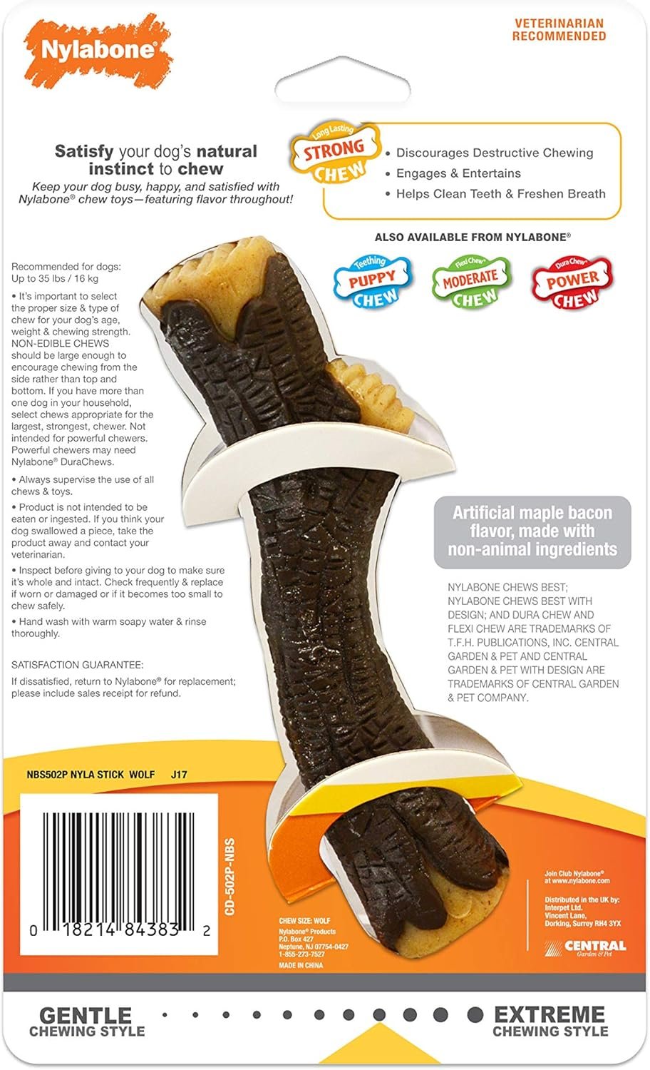 Nylabone Real Wood Stick Toy Strong Chew Toy voor honden, rubberen hondenspeelgoed voor matige en agressieve kauwers, speksmaak, medium – tot 35 lbs, 1 telling