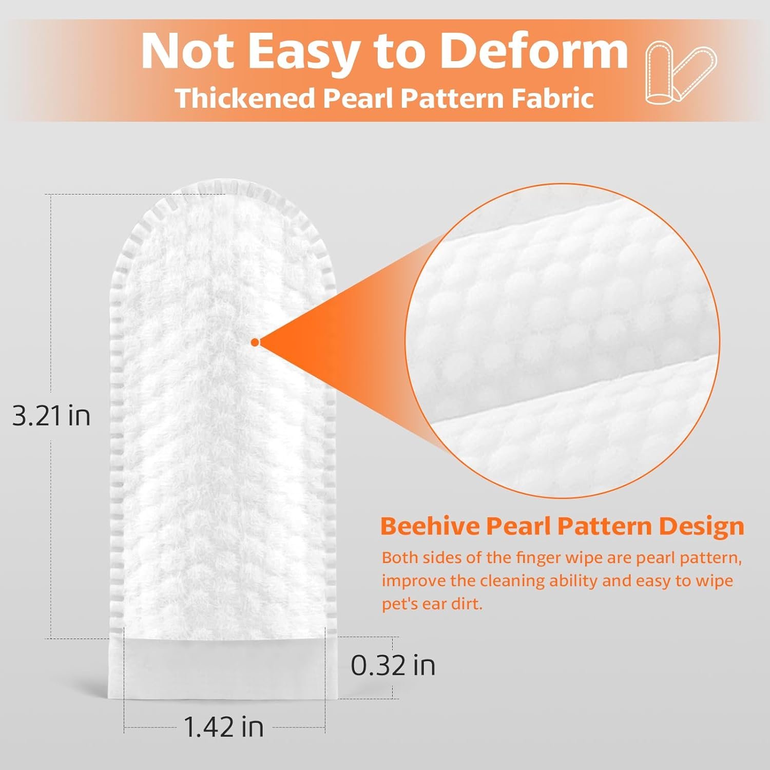 【Vingerveegontwerp en gemakkelijk te gebruiken】 Handig vingerafwijkingsontwerp dat over uw vingers past. Makkelijk om de oren van het huisdier te reinigen en tijd te besparen, wat comfortabel is voor honden. Wegwerp honden oorschoonder vegen zachtjes de oren van je huisdier en gooi ze in de prullenbak.