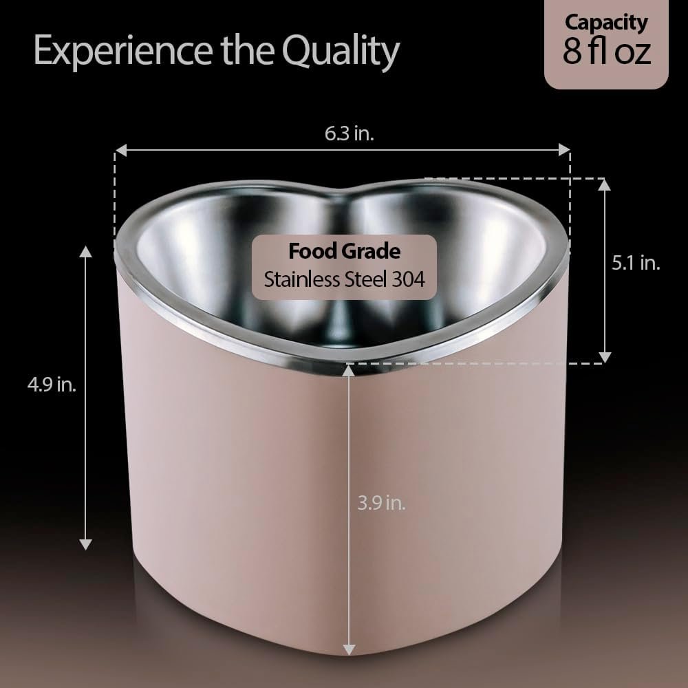 OCM verhoogde kattenkom-8 oz hartvormige verhoogde kattenkommen voor katten en kleine honden, roestvrijstalen kattenkommen, niet-slip, bevordert de spijsvertering, vermindert braken, huisdierenkommen voor katten binnenshuis (roze)