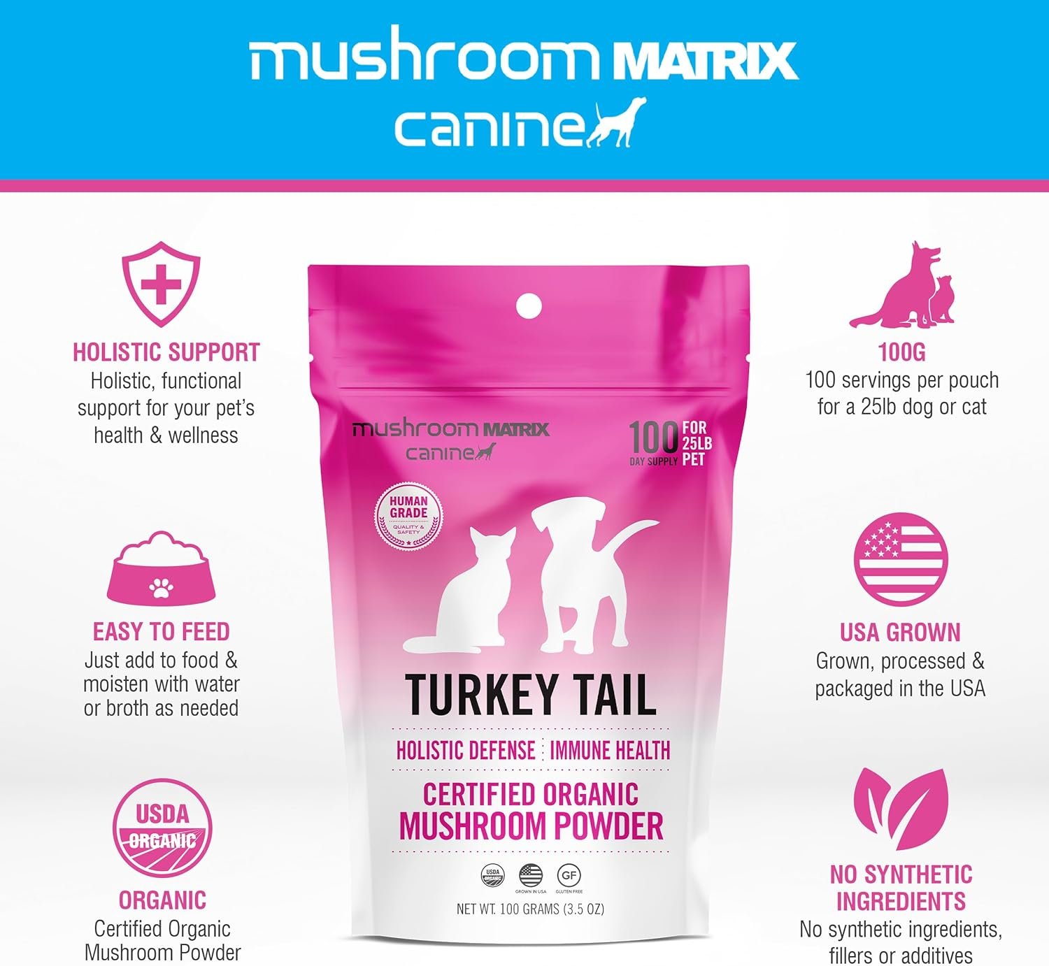 Madrix Matrix Canine Organic Turkije staart paddestoelpoeder voor holistische verdediging en immuunondersteuning supplement voor honden en katten: bevat biologisch kalkoenstaart paddestoelpoeder gemaakt voor honden en katten holistische gezondheid en immuunondersteuning