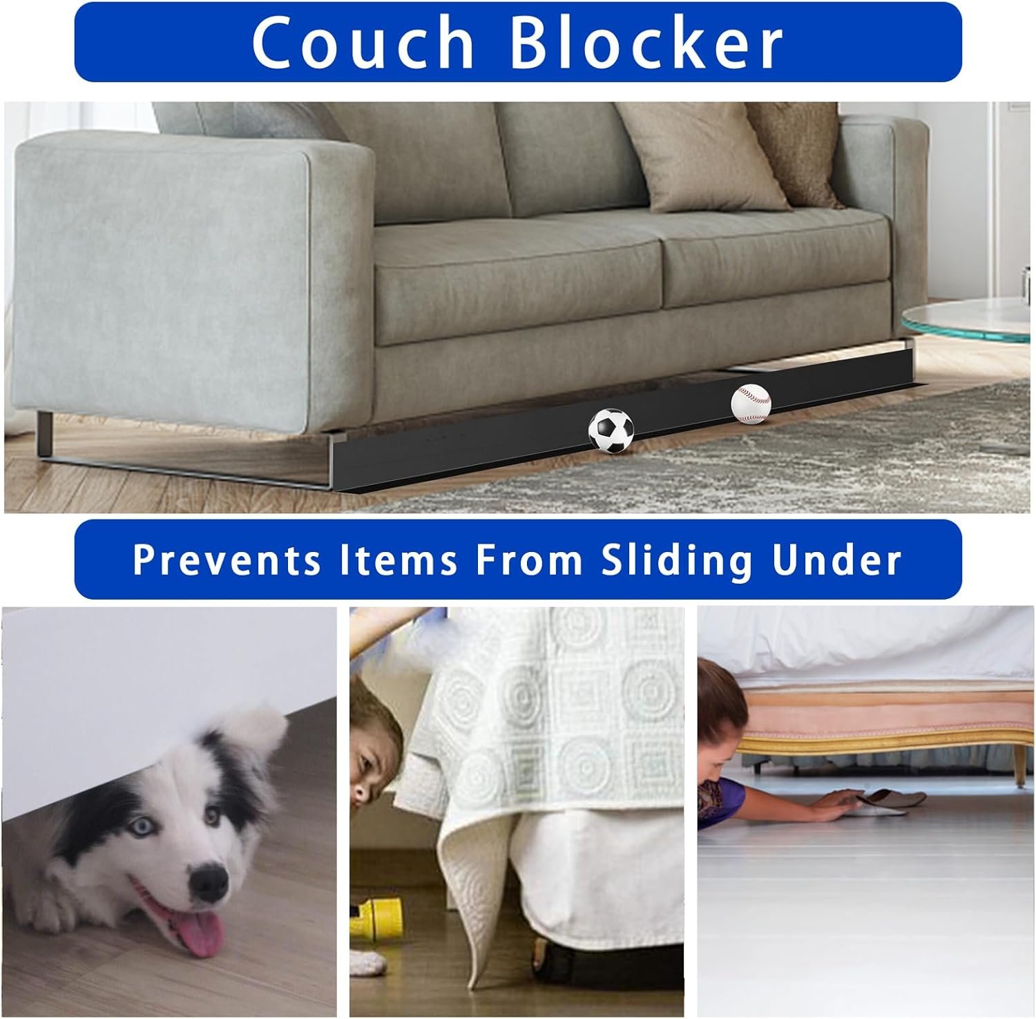 Onder Sofa Blocker :: Onze elastiek onder de bed blocker voor huisdieren creëert een veilige barrière die voorkomt dat dingen eronder glijden. Met deze bankspeelgoedblokker hoeft u niet langer voorover te buigen, op de vloer te liggen of zelfs onder het bed of de bank te kruipen om kleine dingen te vinden. Het maakt speeltijd probleemloos voor kinderen, honden en katten