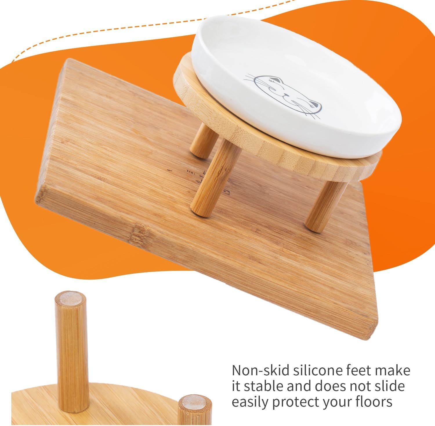 【Verminder de nekbelasting】: Het bamboe -frame verhoogt de kat voedende platen keramiek tot een handiger hoogte, uw kat zou comfortabel kunnen eten en drinken zonder zijn nek te moeten drukken, de druk op de nek of rug te verminderen. Het helpt ook bij het slikken en de spijsvertering. Verlicht hun incidentele braken.